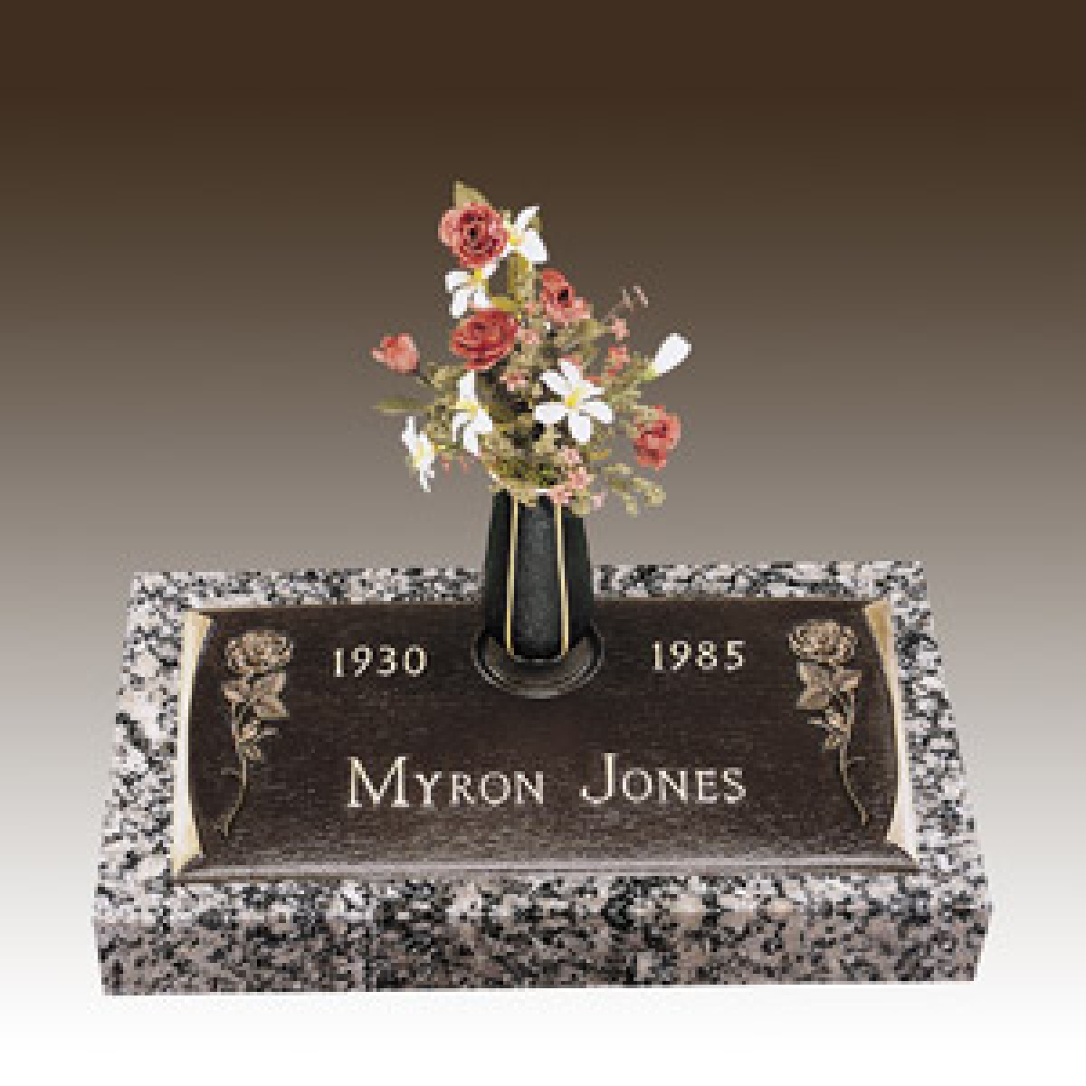 BRONZE ON GRANITE INDIVIDUAL MEMORIAL.  AVAILABLE IN ASSORTED GRANITE COLORS.